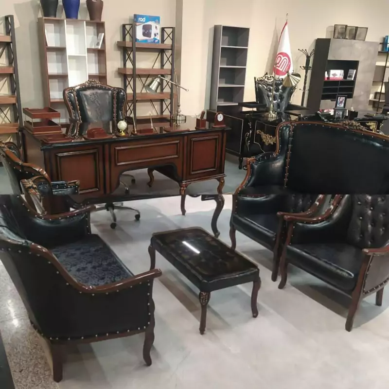ست کامل مبلمان کد 07 با طراحی زیبا شیک شامل میز مدیریت. صندلی مدیریت جلو مبلی. نیم ست اداری 2عدد تک نفره یک عدد 2نفره